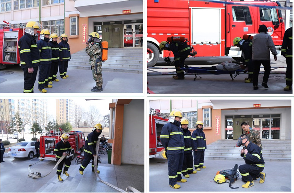 3月3日上午,我校微型消防站与尖草坪公安消防大队在怡丁苑单身公寓组织开展了联勤联训演练,安全保卫处消防应急分队队员和尖草坪区公安消防大队柴村中队的官兵参加了演练。