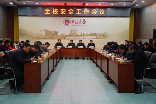 12月27日,我校在主楼15层会议室召开全校安全工作会议,校领导李忠人、沈兴全、雷锋斌、潘晋孝出席会议。党办校办、学生工作部(处)、教务处、基建处、国资处、安全保卫部(处)、后勤管理处(书记和处长)、图书馆、科技园、光电厂(书记和厂长)、附属学校、附属医院、工程训练中心、朔州校区等相关部门主要负责人和16个学院、研究生院党政负责人参加会议。