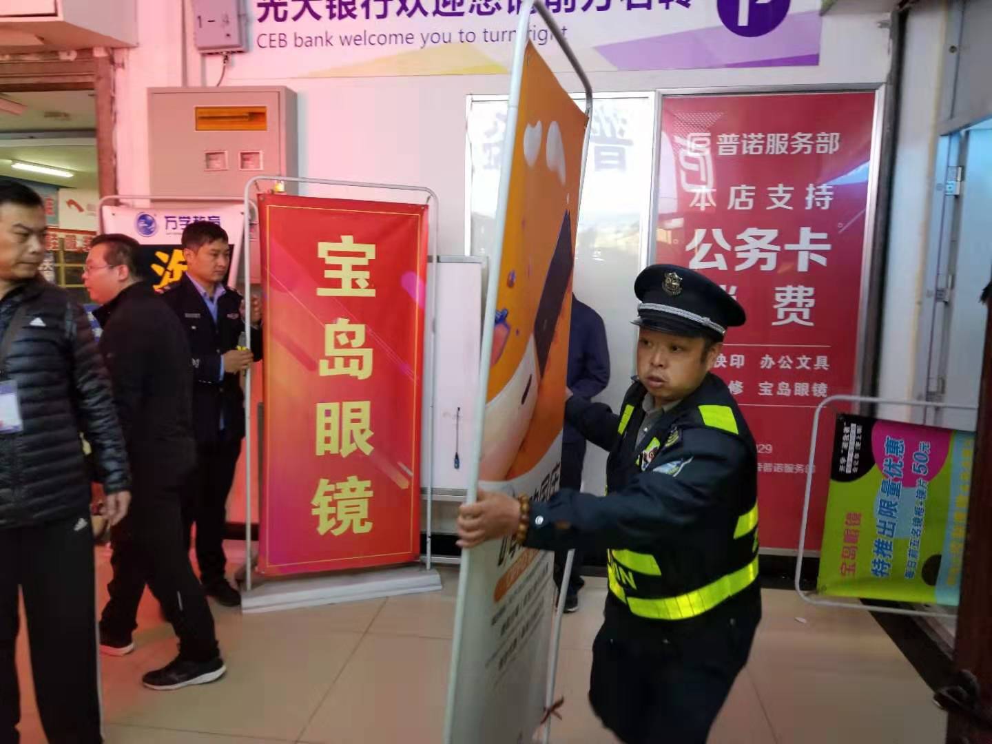 在专项整治中,检查人员按照“边检查、边整治”的原则,督促唐久超市、一层东厅、二层等商户现场清理了疏散通道内摆放的部分货物和灯箱,对不能立即整改的电源线路私拉乱接、货柜桌椅围档在通道内固定的安全隐患,下发《安全检查隐患整改意见书》限期整改。17日,安全保卫处又组织人员,复查核实整改整治情况,对仍未按要求整改的,采取强制措施清理了占用疏散通道的桌椅、围档。