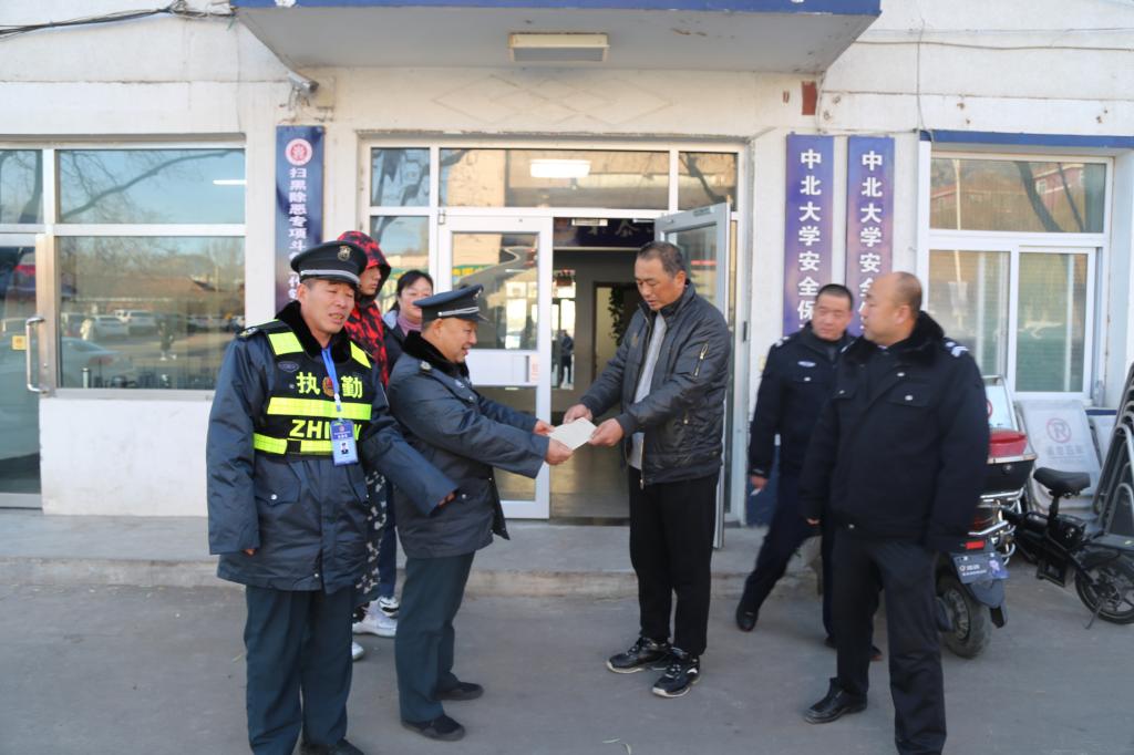 赠人玫瑰,手有余香,岗位平凡,心灵闪光。作为普通的保安一员,王俊伟、刘国安同志始终秉承中华民族助人为乐的优良传统,时刻牢记“师生为重,服务为先”的工作宗旨,在平凡的岗位上闪现人性的光芒,在点滴的小事中感动着大家。他们,也是中北大学一道亮丽的风景线。