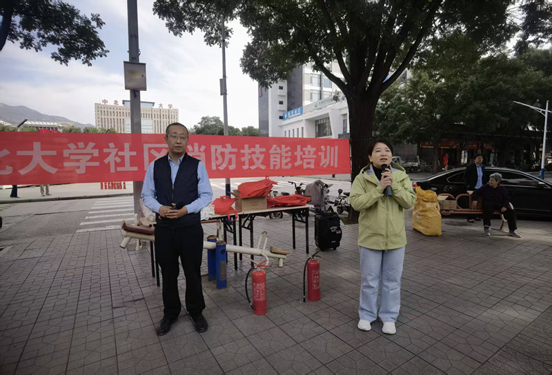 中北大学安全保卫部杜晓强就家居用电安全、燃气安全、保障消防通道畅通、火灾如何报警、火场逃生自救等多个方面向各位居民进行讲解和普及消防安全知识。